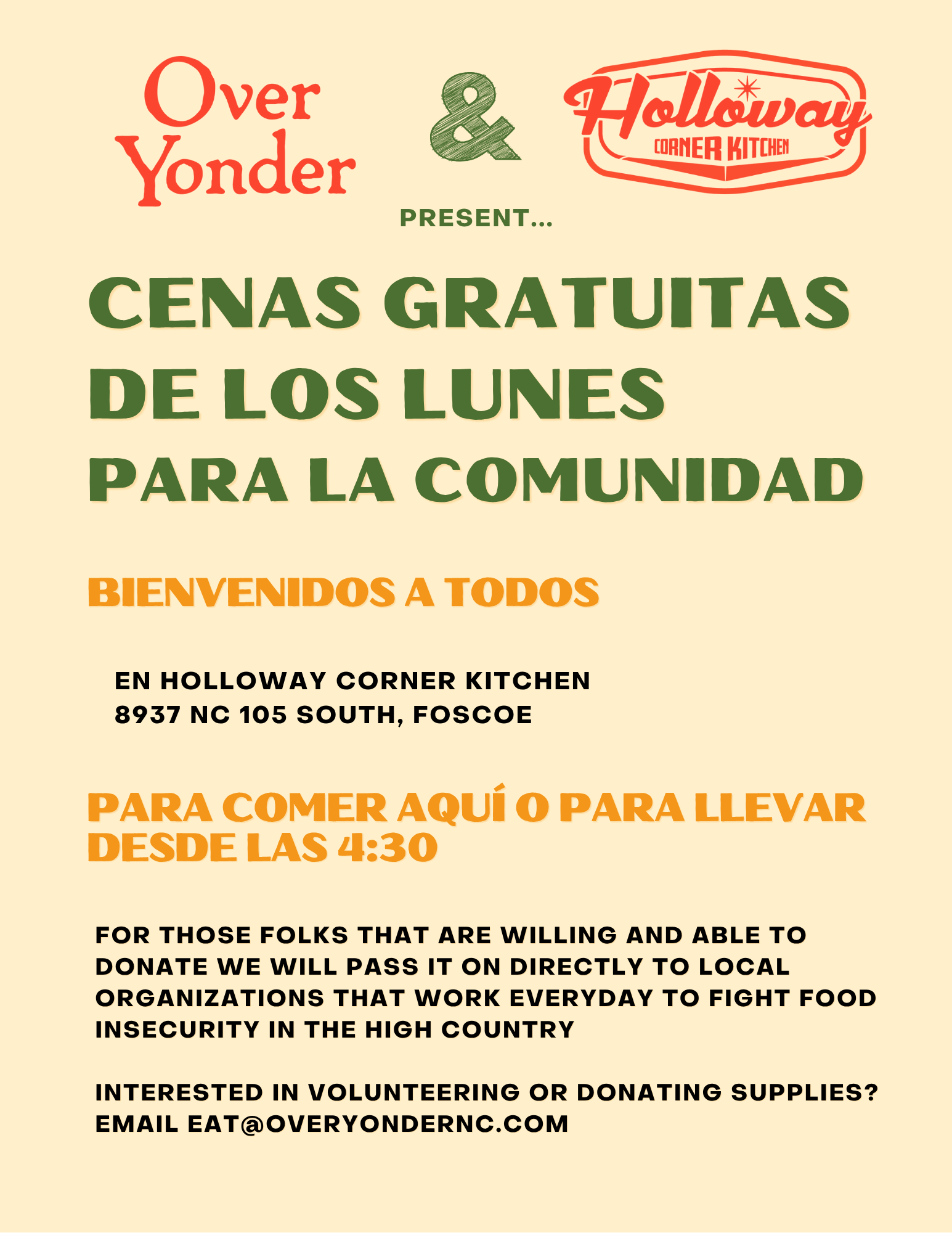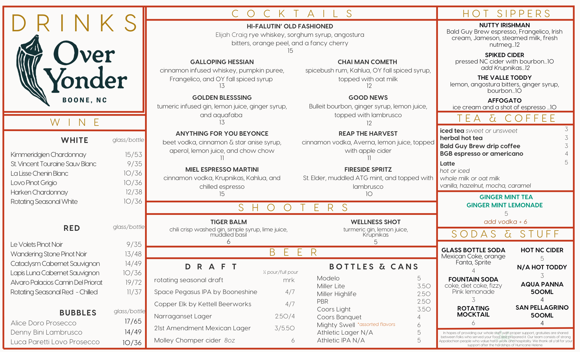 If you can’t find what you’re looking for or for large group requests please email eat@overyonderNC.com